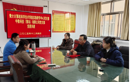 为推动党建工作与业务发展深度融合,12月4日,实验教学中心党支部和山东港口集团中数科技(青岛)有限公司党支部,在博知楼512会议室开展党建共建签约。实验教学中心党支部书记李琳、中数科技(青岛)有限公司副总经理董强到场参加,签约活动由实验教学中心党支部宣传委员王霄鹏主持。